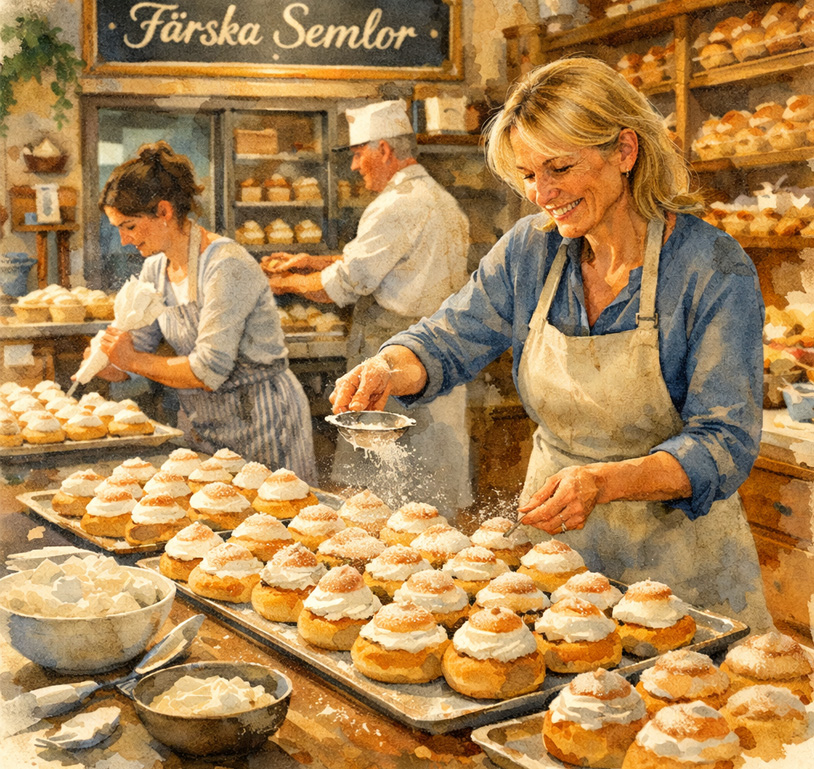 Idag firar vi Semmeldagen – den ljuvliga dagen då den svenska fastlagsbullen står i centrum. En mjuk vetebulle smaksatt med kardemumma, fylld med mandelmassa och toppad med generöst vispad grädde, pudrad med florsocker som ett stilla februaridamm.
