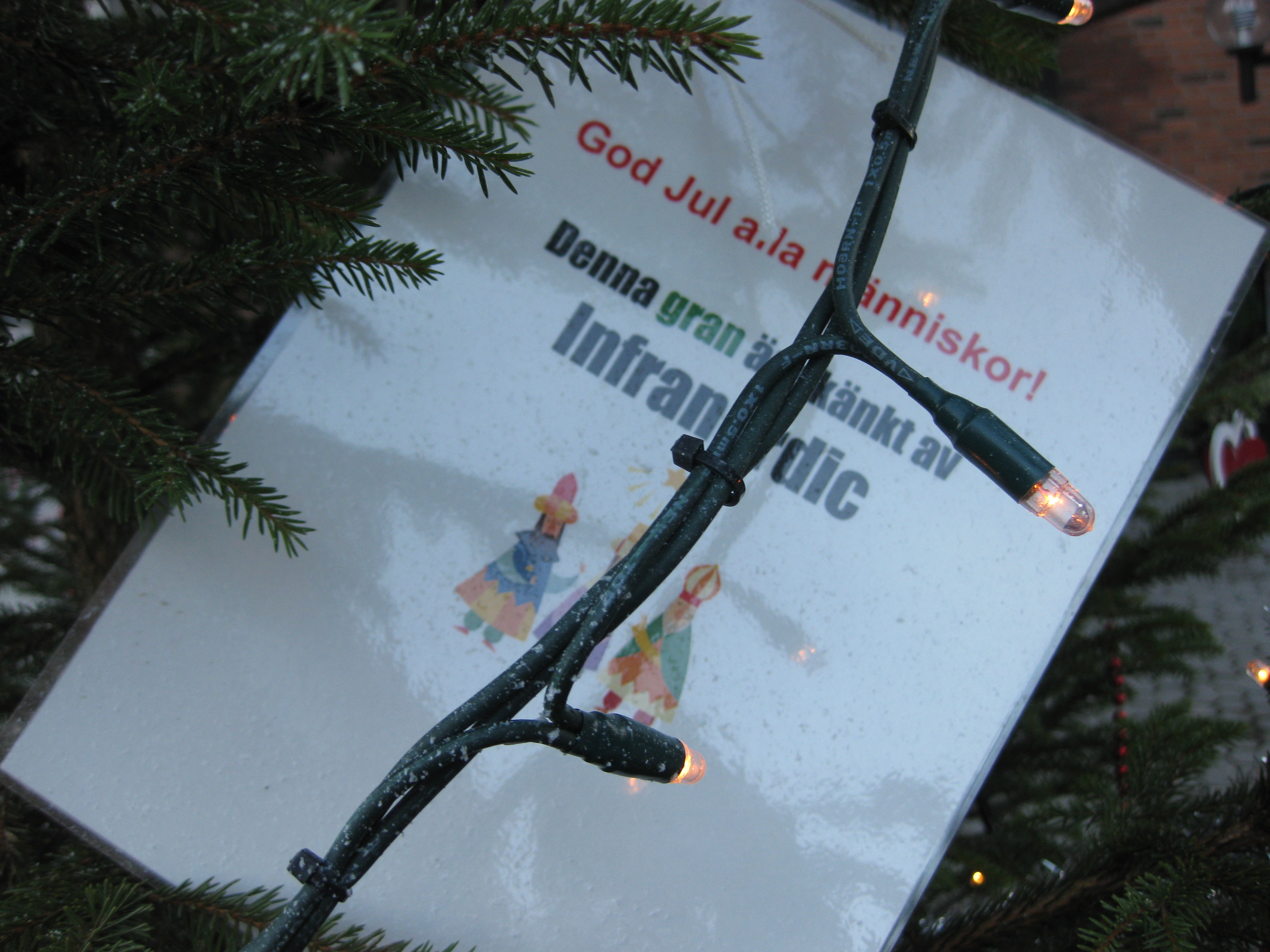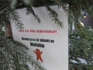 Julgranar skänkta av företagare och andra i majorna står uppställda som deckoration vid sidan av hotel Novotel vid Klippan i Majorna.