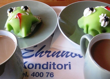 Vi var inne i flera affärer i Kinna och sen tog vi en kopp kaffe i mysiga Ernholms cafe och konditori i skene.