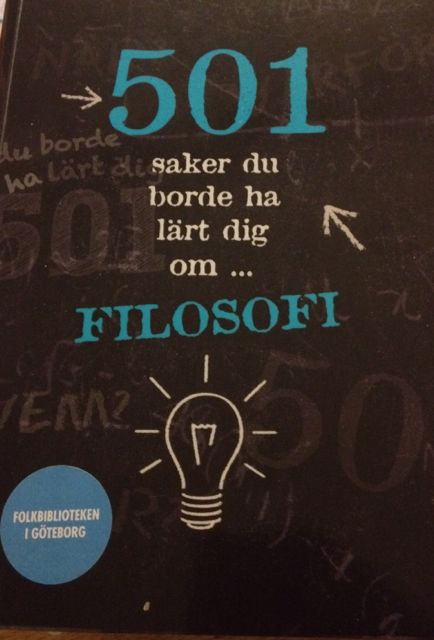 Den här boken som jag lånat om Filosofi är också intressant. Inte att den direkt blir en kontrast till boken om Egypten men den går mer ner i djupare tänkande. Står så här på baksidan i boken. ”501 saker du borde ha lärt dig om …FILOSOFI.