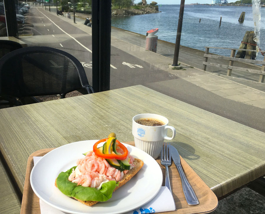 Tog idag tidig förmiddagspromenad i klippan. Precis när Klippans Konstcafè öppnat så köpte jag en räksmörgås med en kopp kaffe till. Underbart att sitta ute och samtidigt unna mig något gott.