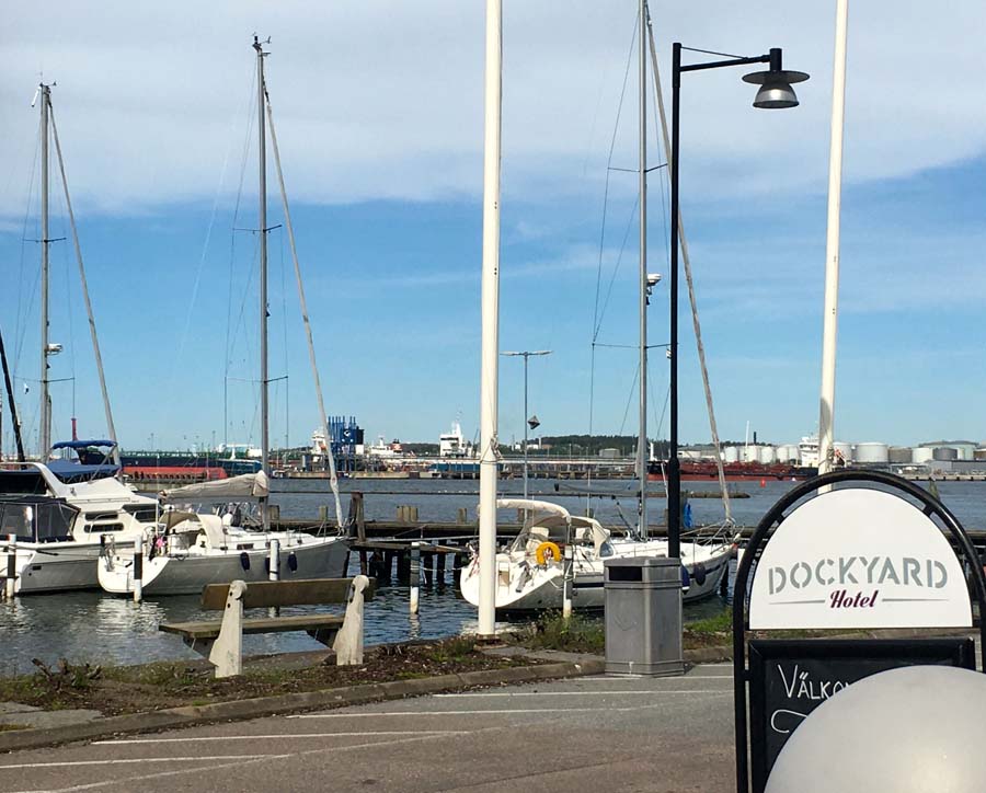 Efter promenaden i Botaniska trädgården här i Göteborg så tog jag bilen till Dockyard Hotel . Blev nygräddade frasiga våfflor med sylt och grädde till förmiddagskaffet. Gott att kunna sitta ute då det var 17°.