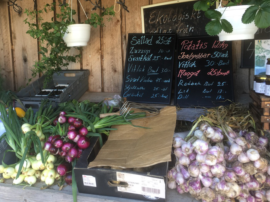 Vackert att blicka ut mot åkern som tillhör gården. Längre ner vid skogen finns en fägata och hagar,