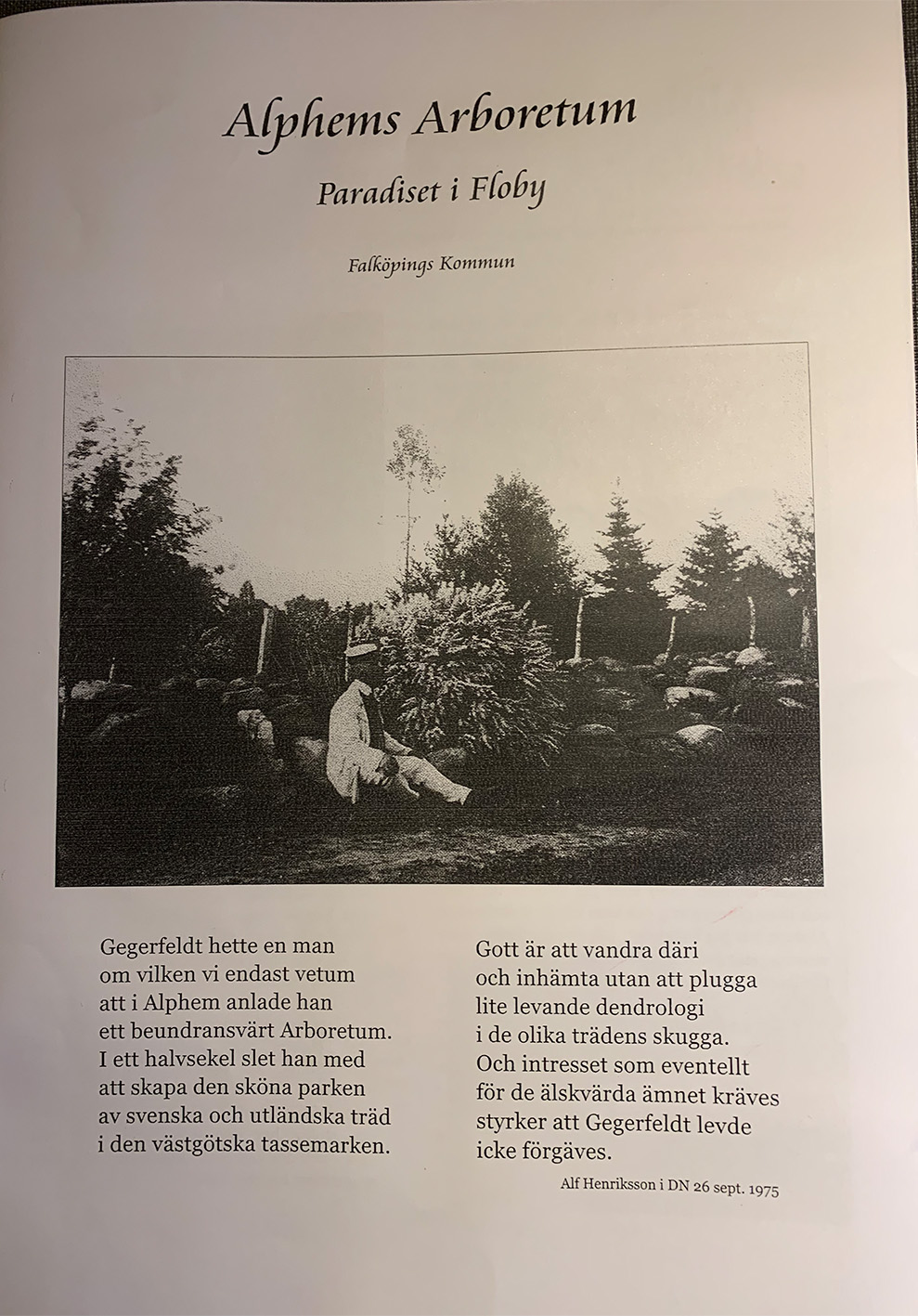 Gårdagens roadtripp gick till Alphems Arboretum ca 7 mil härifrån Grand Hotell i Alingsås. En intressant plats med en rik historia och spännande energi. Mannen Frans Johan Gegerfeldt (1865-1953) skapade en trädsamling med omkring 220 olika lövträd och buskar samt över 100-talet barrträd som man kan titta på i Alphelm som ligger ute i tassemarkerna.