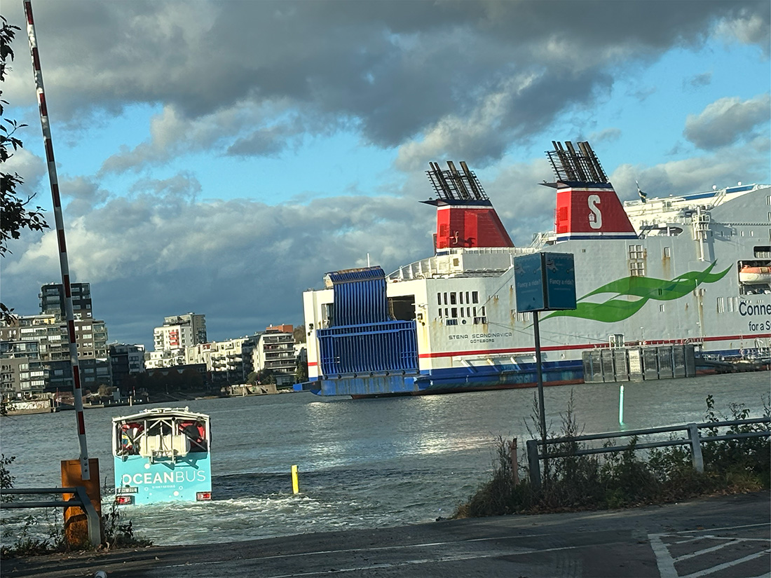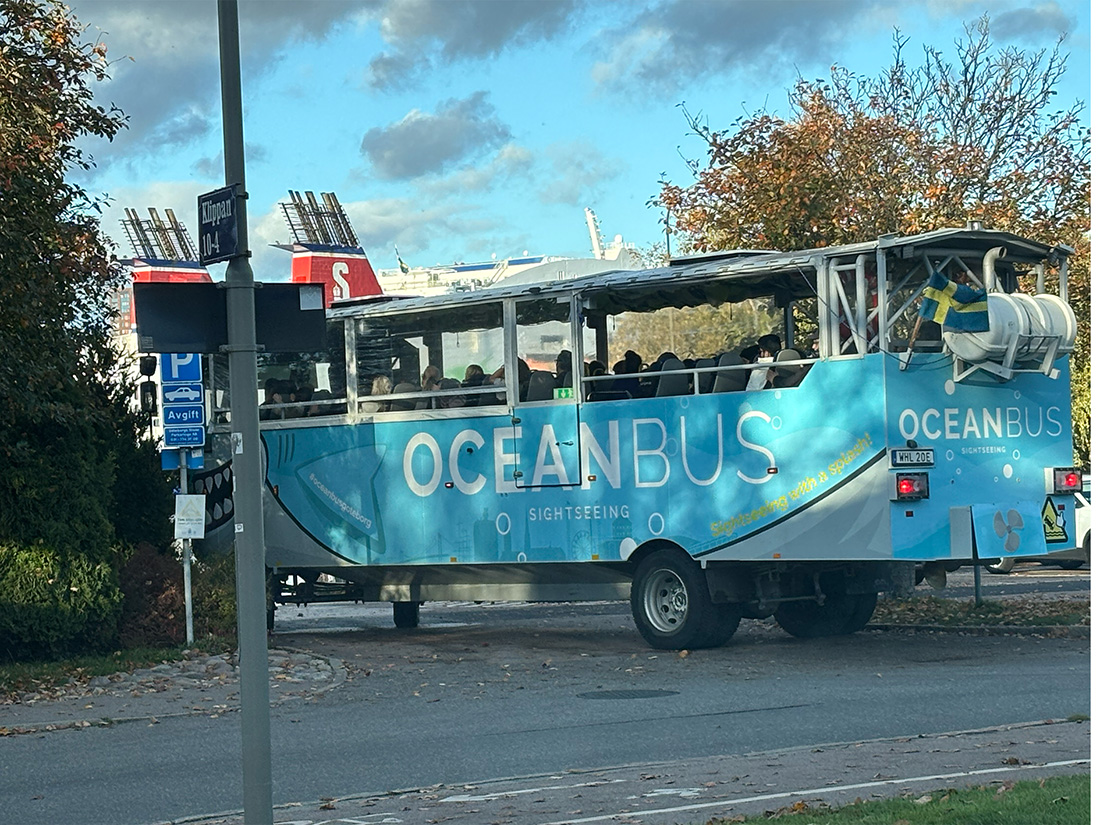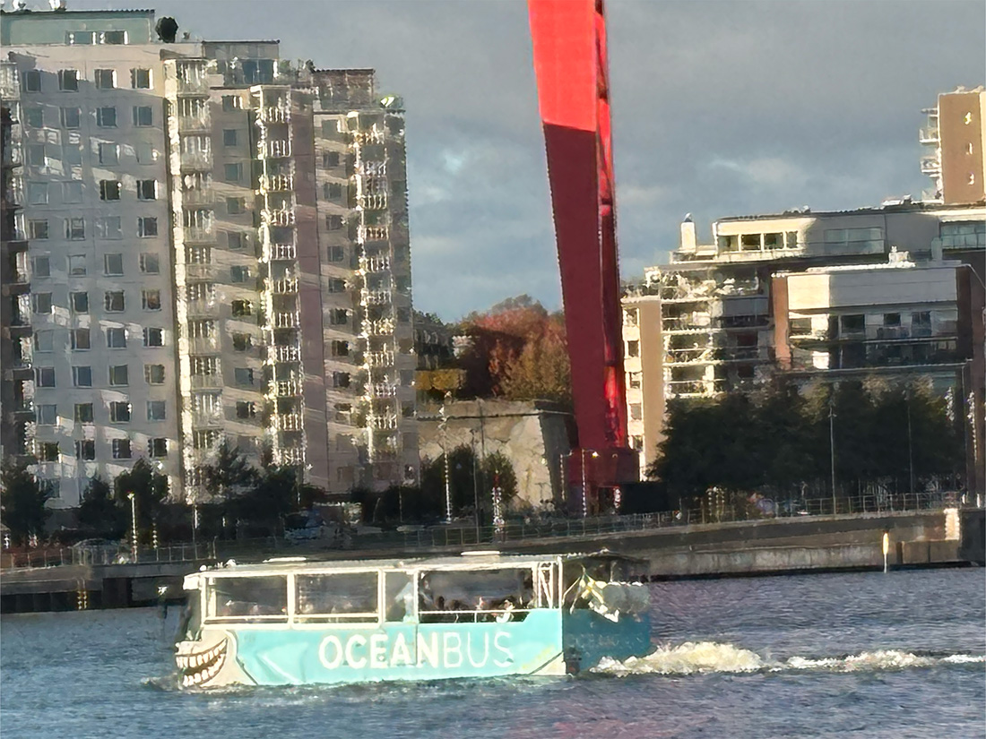 Klockan är 15:58, och jag är i Klippan. Solen ligger lågt över älven. Det är en klar och kylig oktobereftermiddag när Oceanbusen dyker upp vid Klippan – först som en buss på gatan, sedan som en båt i vattnet. Turisterna skrattar när den kör rakt ner i älven, och snart guppar den fram mellan färjor och reflektioner.
