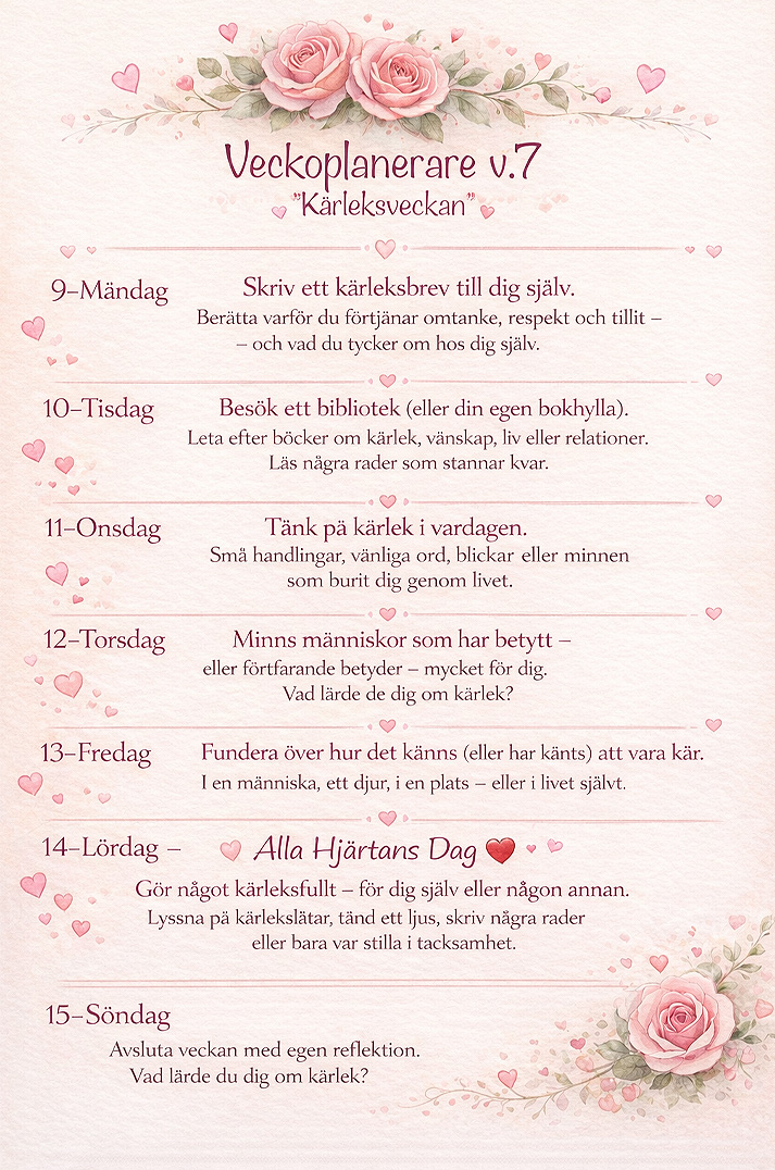 Det är fredag och snön yr här i Göteborg. Tänker inte ge mig ut. Ägnar mig istället med att skapa lite gällande nästa vecka. Typ kärleksveckan. Alltid lika kul.