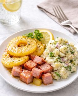 Recept: Glacerad ananas-kassler med lätt potatissallad