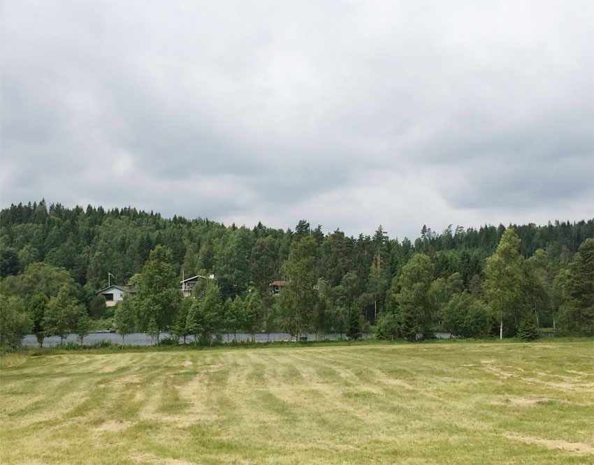 en bonde längre ner i byn. Och han tar väl höet när han hinner.