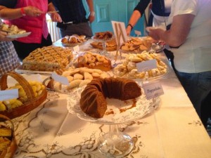 Var idag på loppis och gammaldags kaffekalas med 7 sorters kakor och moccatårta i Bollebygds hembygdsgård. Det öppnade kl 11.00 och var redan då köbildning. Hörde att om man velat så kunde man ha fått beställa bord inne men dom flesta ville sitta ute i försommarvärmen. Det var bakat två stora moccatårtor av en kvinna som hållit på med det i många år. Hörde av någon att det gått åt 20 ägg till varje tårta.